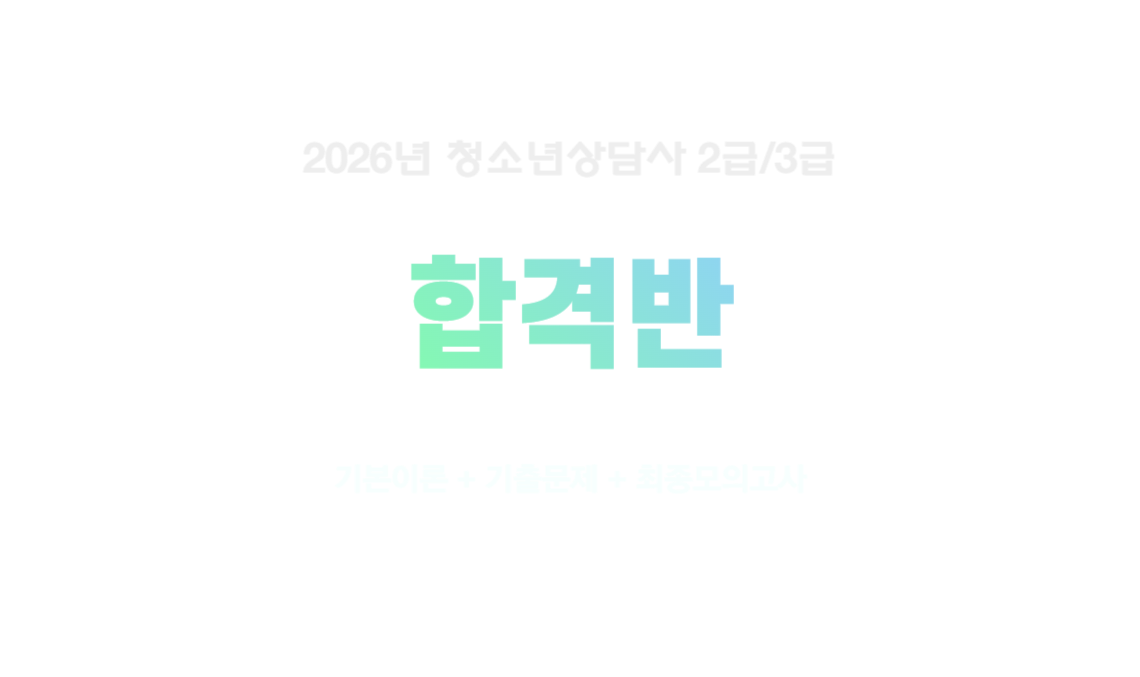 패키지 강좌청소년상담사2급 2026 합격반[사전예약 이벤트] ※교재 출간시 발송600,000320,000원 -