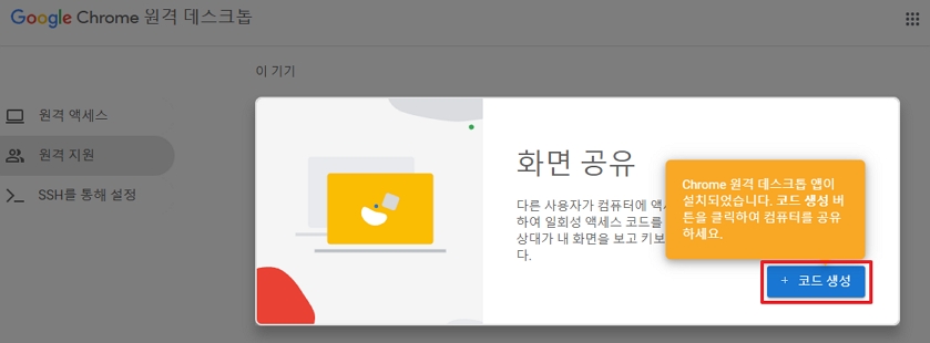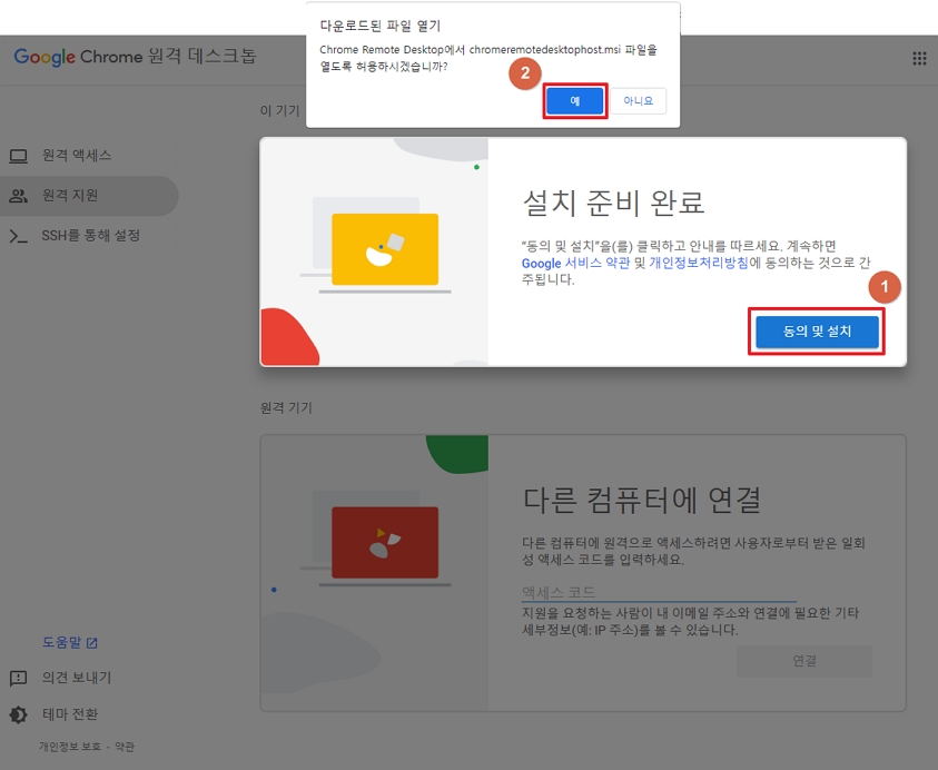 5. 화면에 표시되는 안내에 따라 Chrome 원격 데스크톱을 다운로드하고 설치합니다.