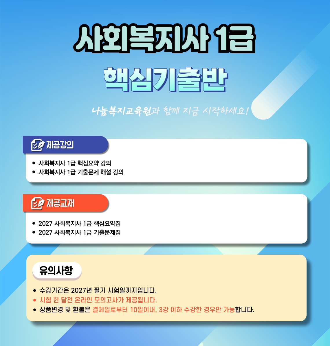 | 11. | [기출문제]2024 사회복지사1급 분석특강 - 2024년도 시행 사회복지사1급 기출문제 분석특강 |